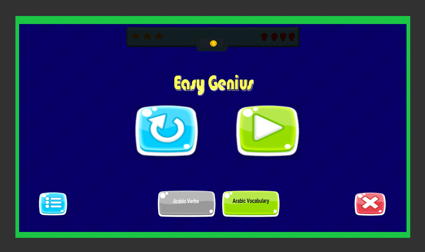 EZ Genius is a quiz game for mobile devices that teaches you Arabic effortlessly with NO STUDYING. Simply play EG a couple of minutes every day and in No Time you'll be able to understand more than 80% of the Quraan.